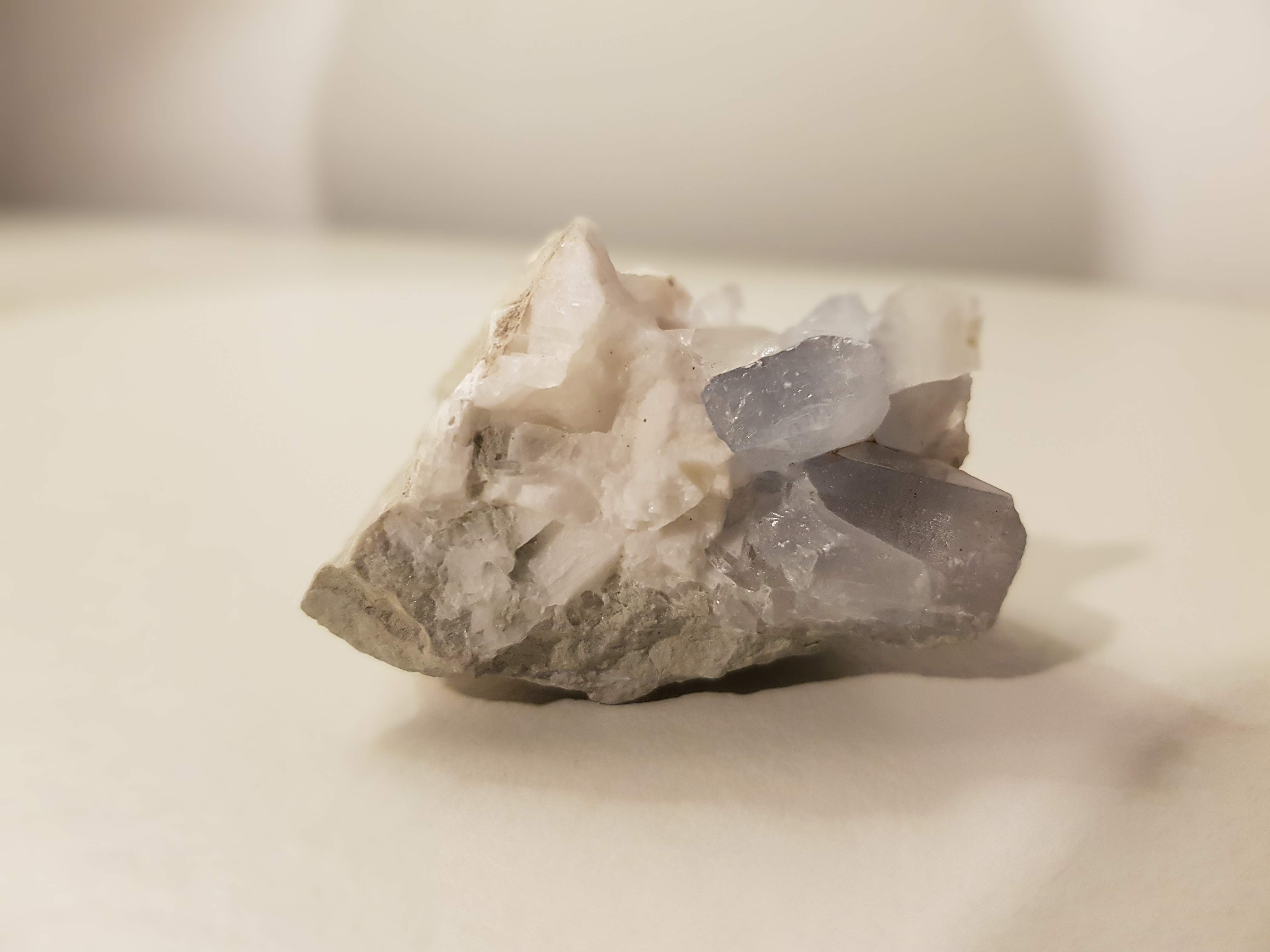 A strontium sulfate mineral, most commonly found as pale blue crystals. It possesses a high, gentle vibration, associated with angelic communication, serenity, mental clarity, and purity of heart.