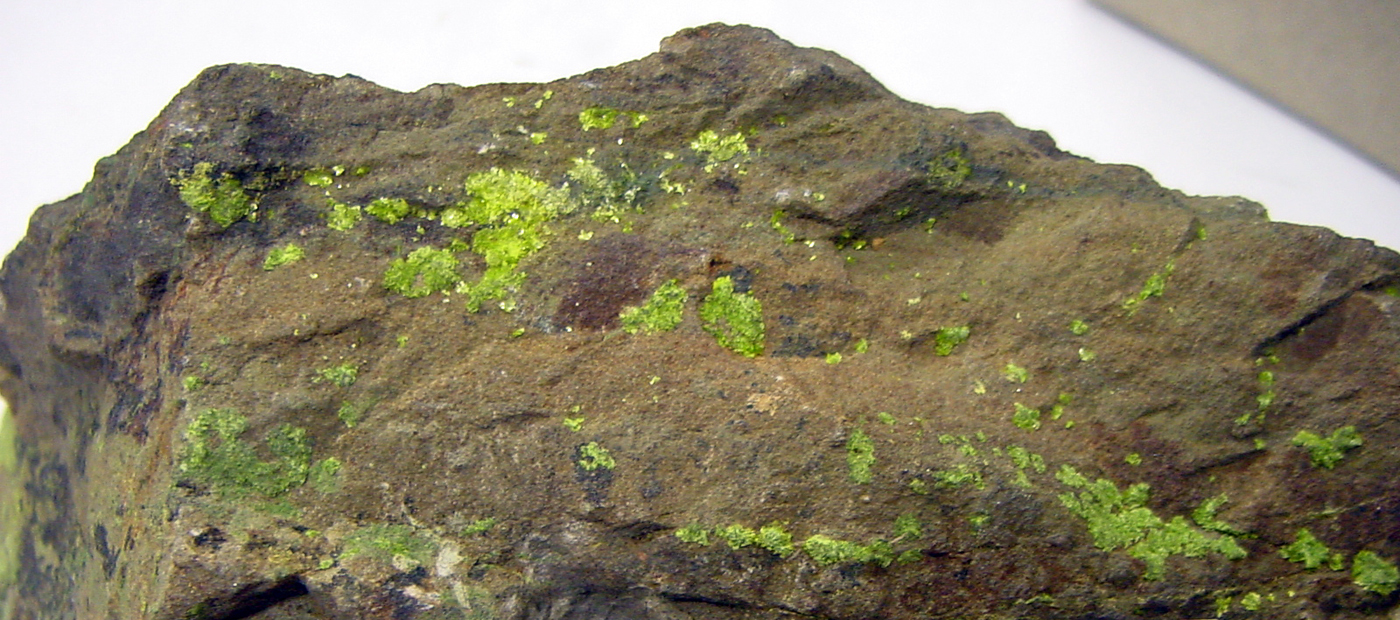 Hydrated calcium copper vanadate, often olive green. It's associated with creativity, grounding, and stimulating the sacral chakra.