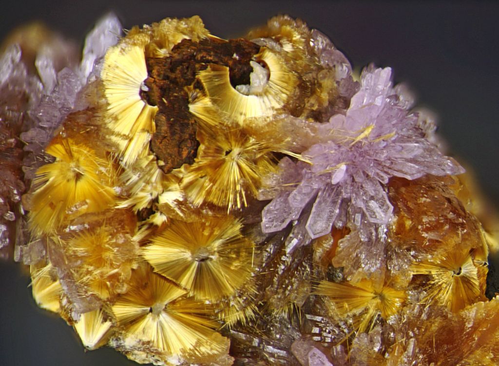 A hydrated iron aluminum phosphate, often found as yellowish to brownish radiating acicular inclusions in quartz or amethyst. It's considered a high-vibration 'stone of ascension,' enhancing spiritual awareness and intuition. (Note: 'Cacoxenite in Amethyst' is often Goethite or other iron minerals).
