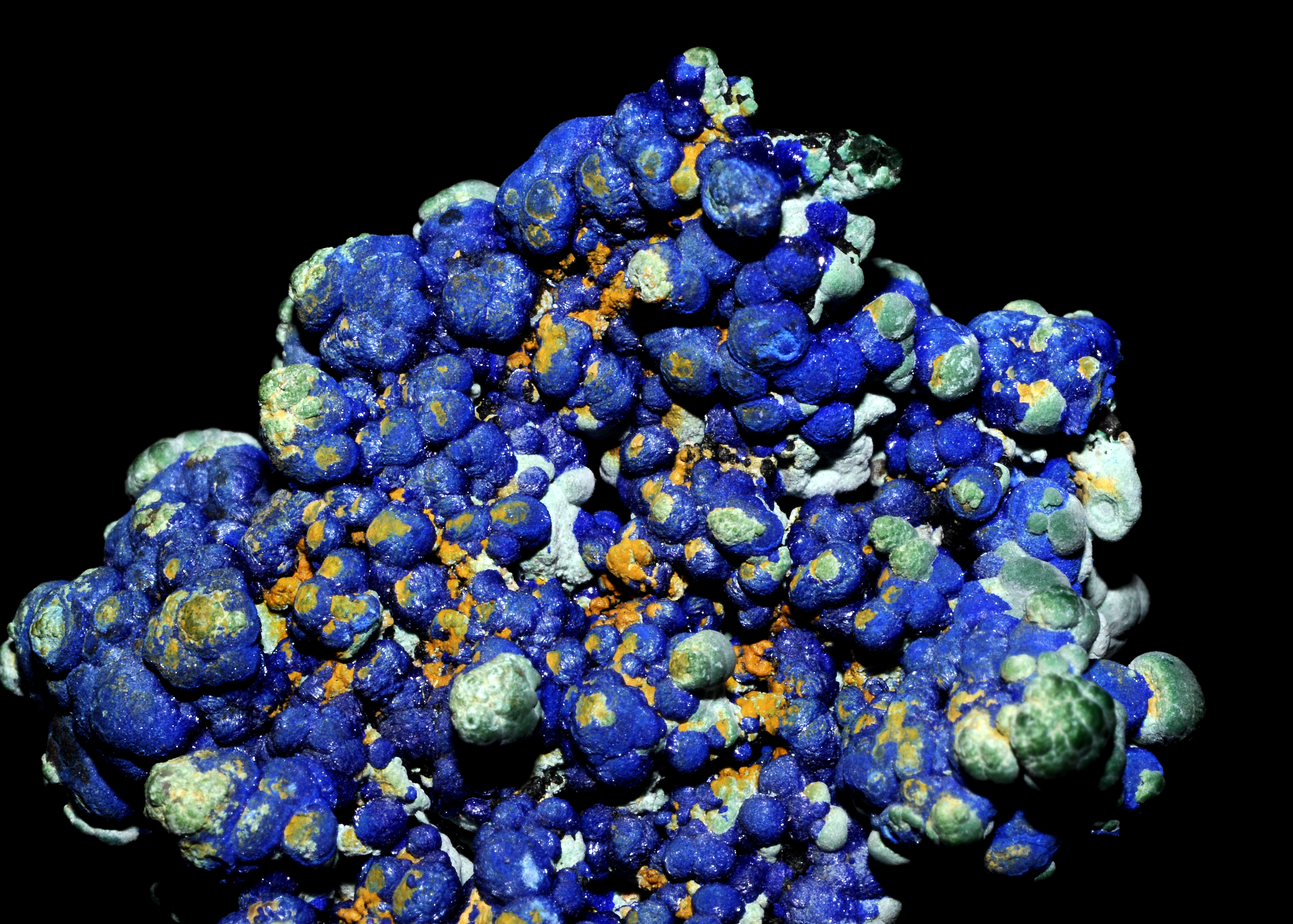 Massive, botryoidal, stalactitic, crystals are acicular to tabular prismatic