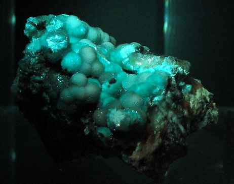 A copper zinc carbonate hydroxide, forming blue to green botryoidal crusts. It's associated with emotional expression, tranquility, and soothing the throat chakra.