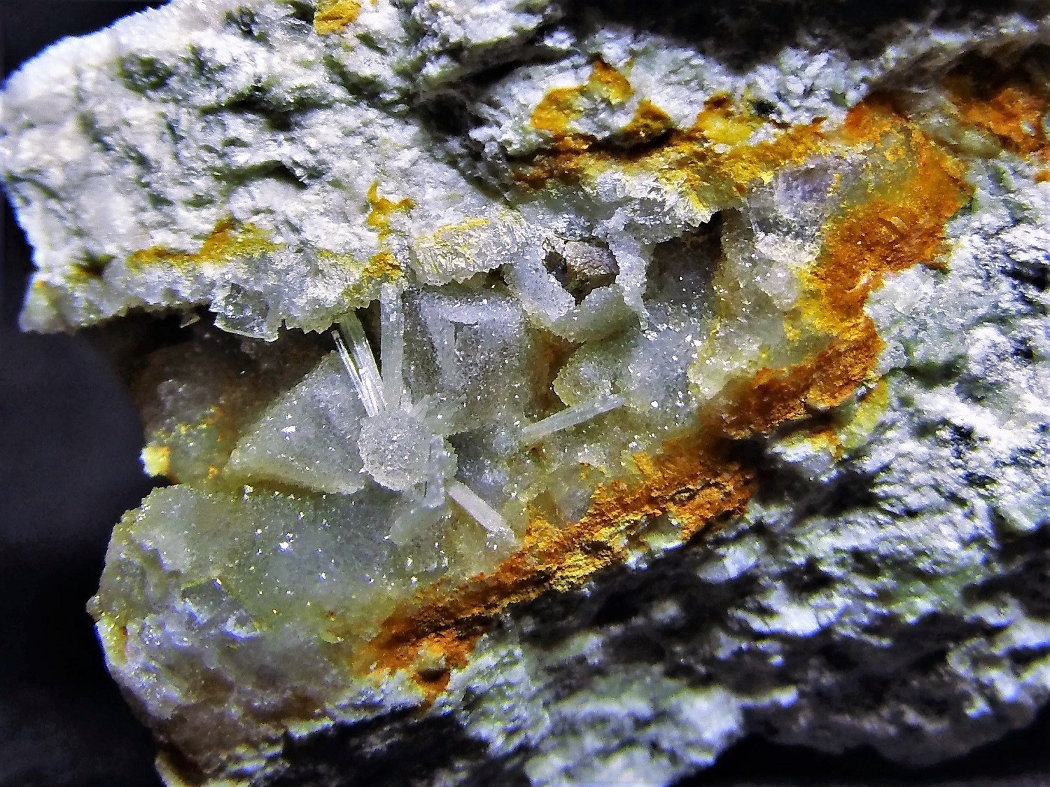 Prismatic crystals; fibrous, radial, spherulitic